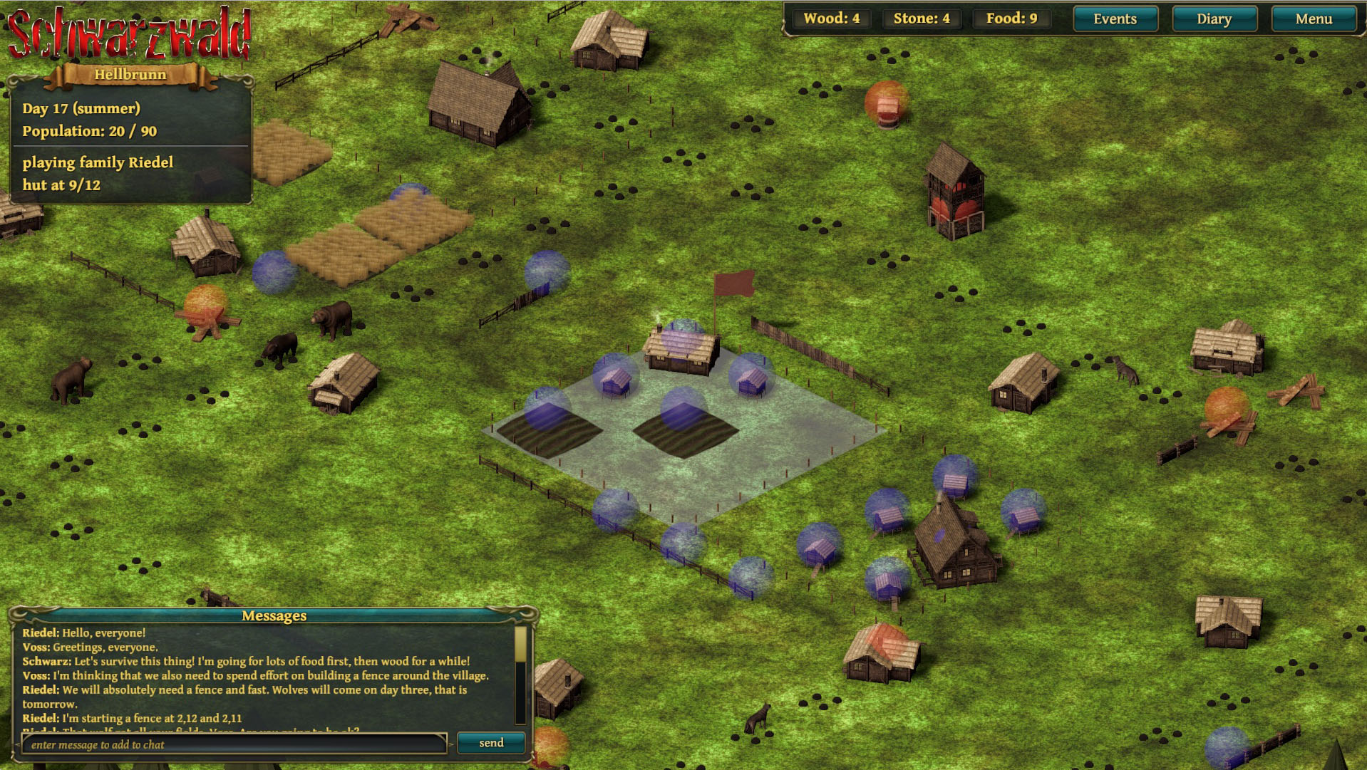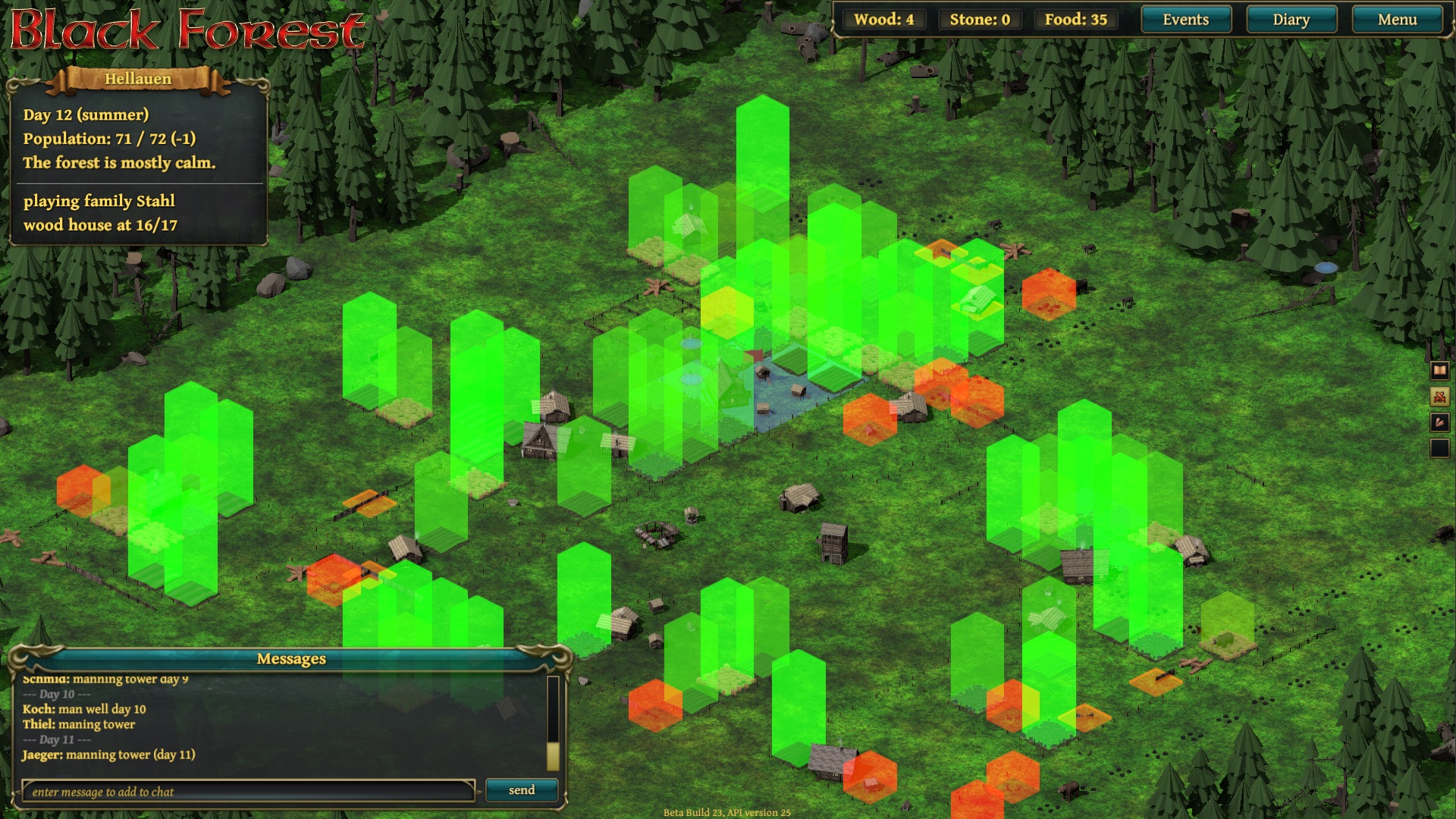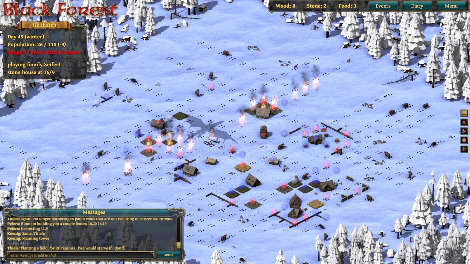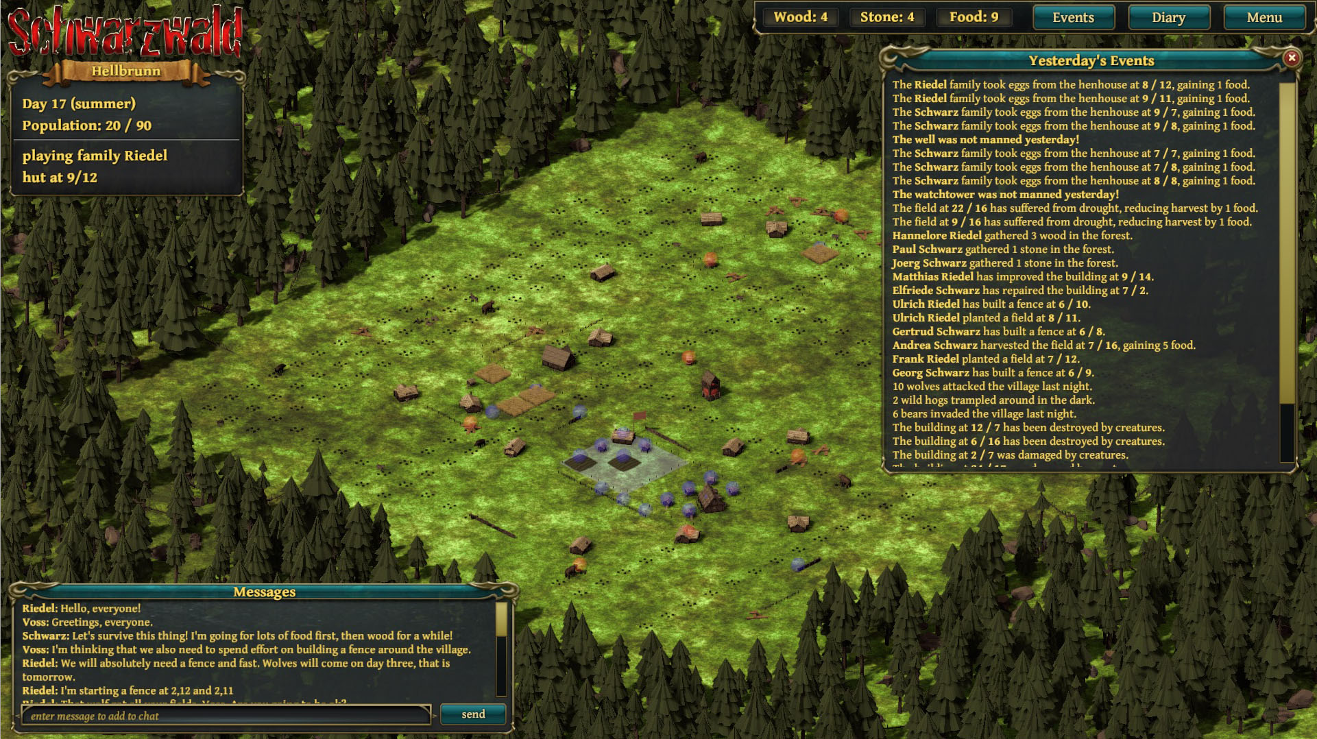 Up to 20 families would struggle to survive against nightly monster attacks. The nasty element was that both cooperation and betrayal were viable strategies, and at certain points you would re-evaluate. Maybe you did well with cooperating so far, but now… today (each turn was one day) it would benefit you so much to betray your neighbour and throw him under the bus - or monsters, as it were.