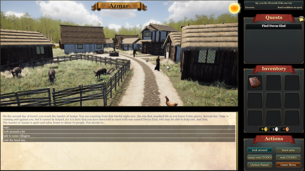 In Legacy, players follow the story of Nevan, a young man whose father has just been taken away and who gave him rather mysterious instructions with his last words. The game is dialog-focussed, with living NPCs who remember how you behaved yourself and even gossip with others behind your back. In a medieval/fantasy world, reputation matters.